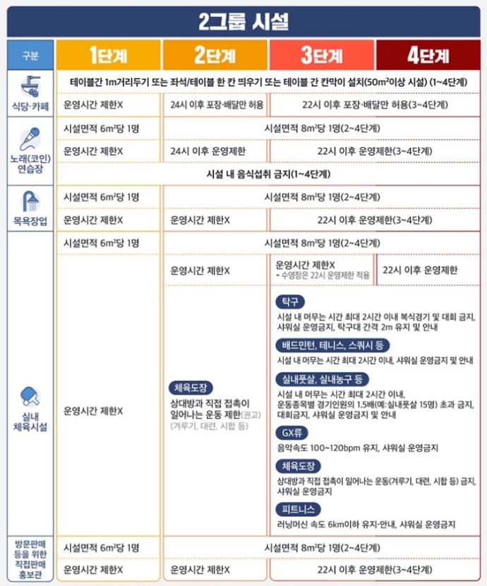 - 4단계 기준 실내체육시설 내에서 샤워실 운영을 금지됩니다.